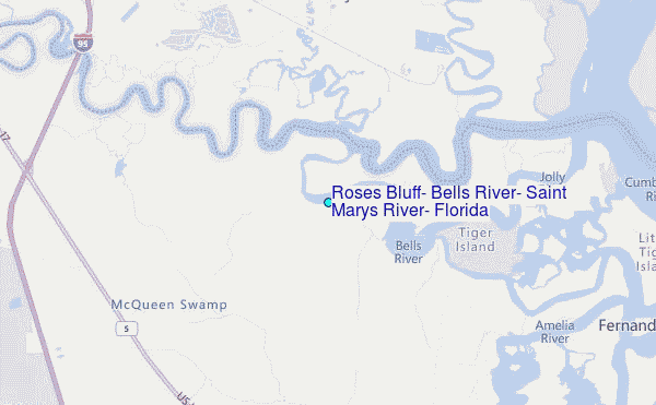Choose Roses Bluff, Bells River, Saint Marys River, Florida Location Map Zoom: