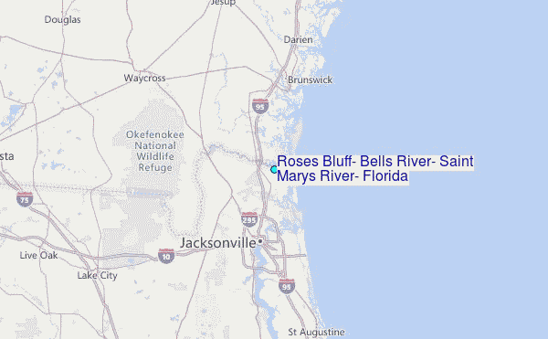 Use this relief map to navigate to tide stations, surf breaks and cities that are in the area of Roses Bluff, Bells River, Saint Marys River, Florida.