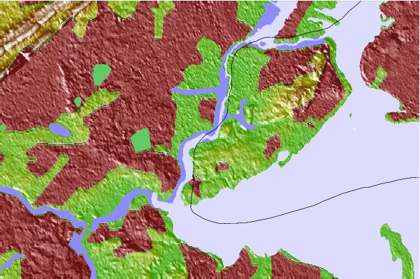 Use this relief map to navigate to tide stations, surf breaks and cities that are in the area of Rossville, New York.