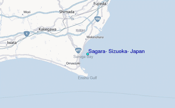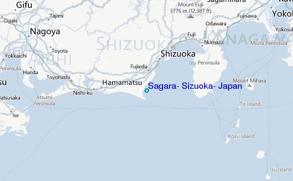 Use this relief map to navigate to tide stations, surf breaks and cities that are in the area of Sagara, Sizuoka, Japan.