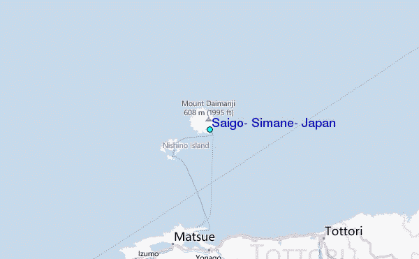Use this relief map to navigate to tide stations, surf breaks and cities that are in the area of Saigo, Simane, Japan.