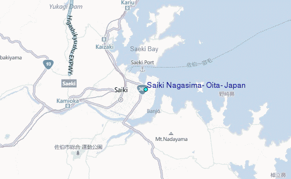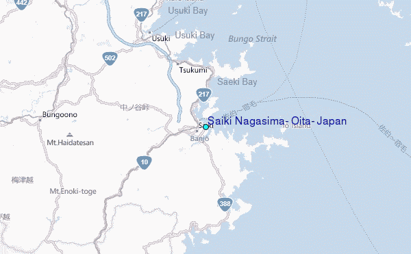 Use this relief map to navigate to tide stations, surf breaks and cities that are in the area of Saiki Nagasima, Oita, Japan.