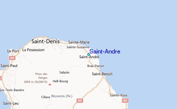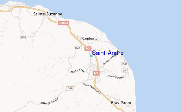 Use this relief map to navigate to tide stations, surf breaks and cities that are in the area of Saint-Andre.