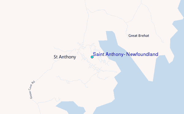 Use this relief map to navigate to tide stations, surf breaks and cities that are in the area of Saint Anthony, Newfoundland.