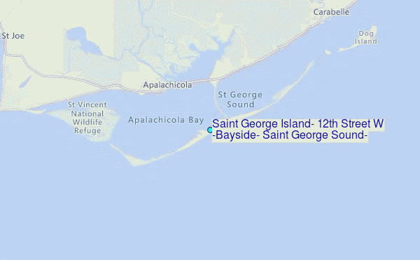 Use this relief map to navigate to tide stations, surf breaks and cities that are in the area of Saint George Island, 12th Street W (Bayside), Saint George Sound, Florida.