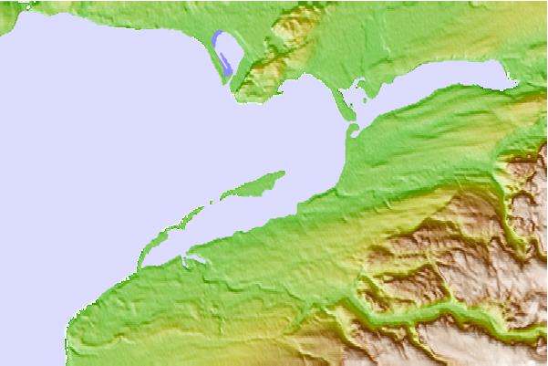 Use this relief map to navigate to tide stations, surf breaks and cities that are in the area of Saint Georges Harbour, Newfoundland.