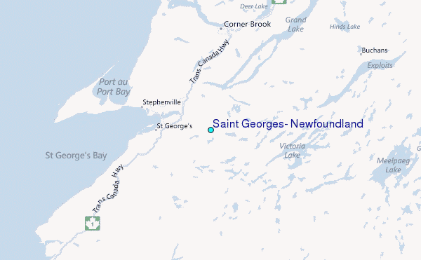 Use this relief map to navigate to tide stations, surf breaks and cities that are in the area of Saint Georges, Newfoundland.