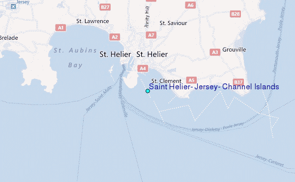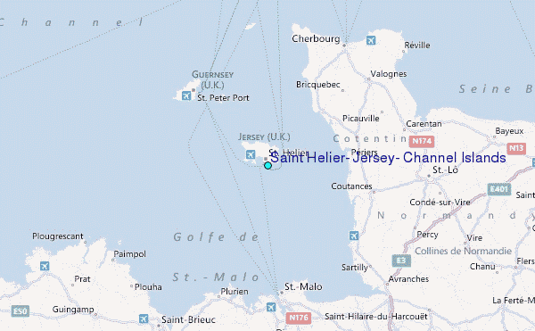Use this relief map to navigate to tide stations, surf breaks and cities that are in the area of Saint Helier, Jersey, Channel Islands.