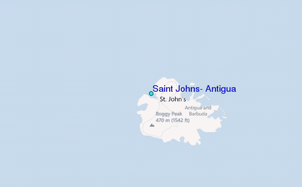 Use this relief map to navigate to tide stations, surf breaks and cities that are in the area of Saint Johns, Antigua.