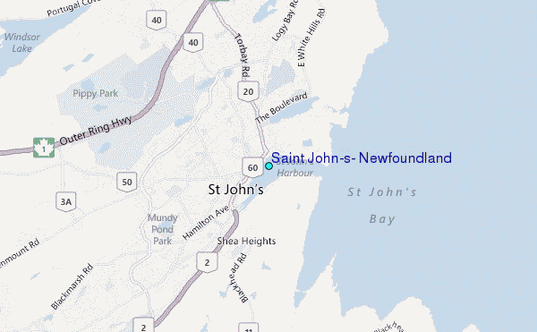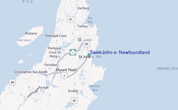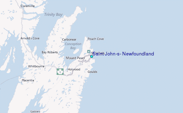 Use this relief map to navigate to tide stations, surf breaks and cities that are in the area of Saint John's, Newfoundland.