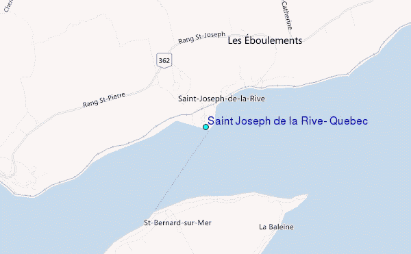 Use this relief map to navigate to tide stations, surf breaks and cities that are in the area of Saint Joseph de la Rive, Quebec.