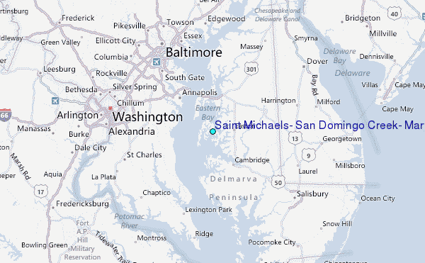 Use this relief map to navigate to tide stations, surf breaks and cities that are in the area of Saint Michaels, San Domingo Creek, Maryland.