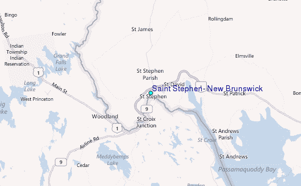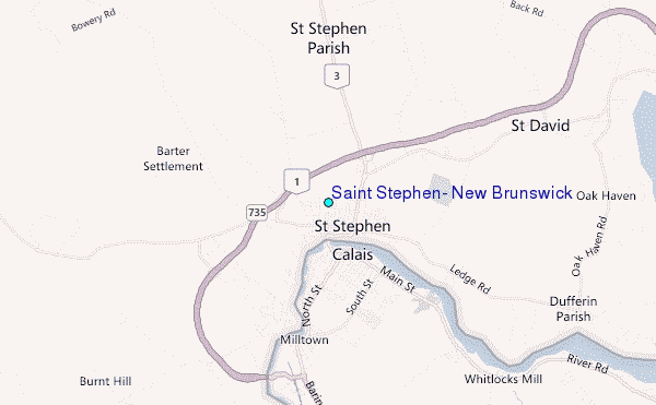 Use this relief map to navigate to tide stations, surf breaks and cities that are in the area of Saint Stephen, New Brunswick.