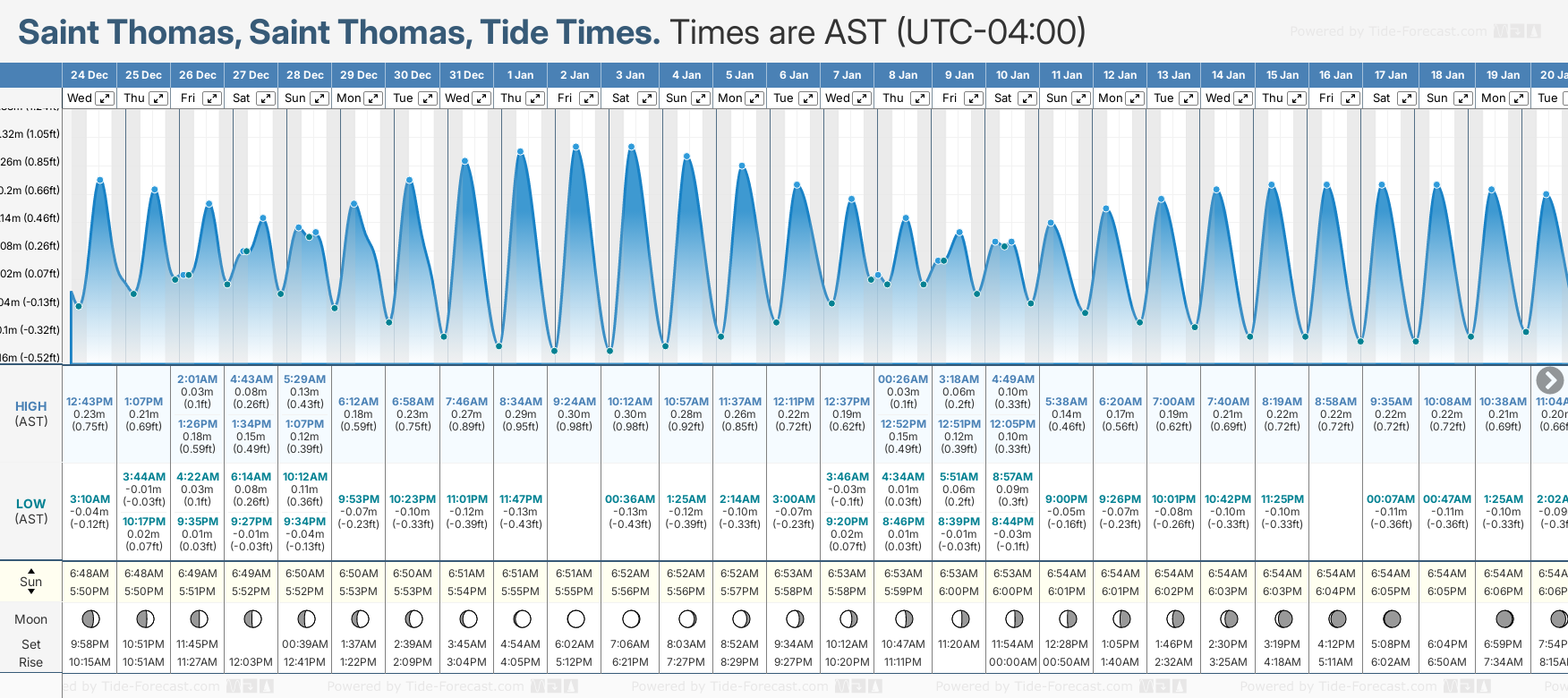Tide Times for Saint Thomas, Saint Thomas: Thursday 25 December 2025