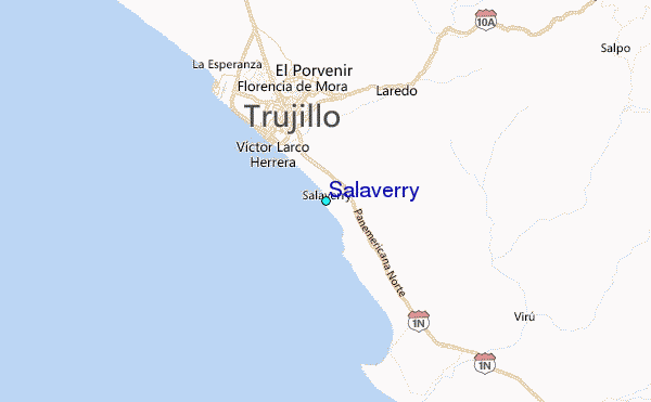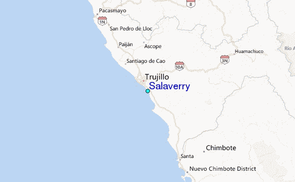 Use this relief map to navigate to tide stations, surf breaks and cities that are in the area of Salaverry.