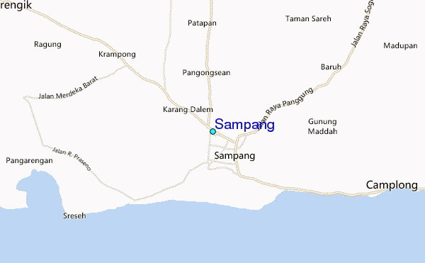 Use this relief map to navigate to tide stations, surf breaks and cities that are in the area of Sampang.