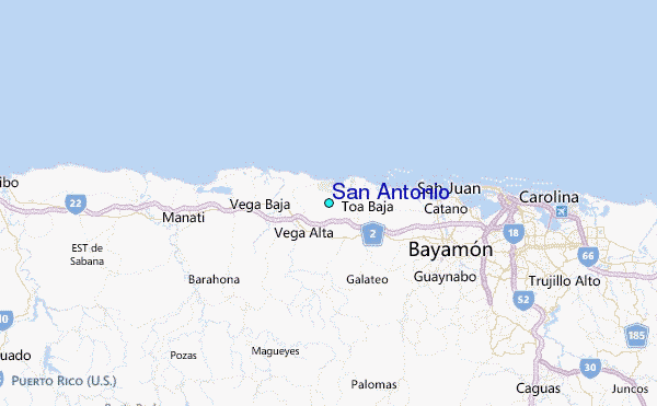 Use this relief map to navigate to tide stations, surf breaks and cities that are in the area of San Antonio.