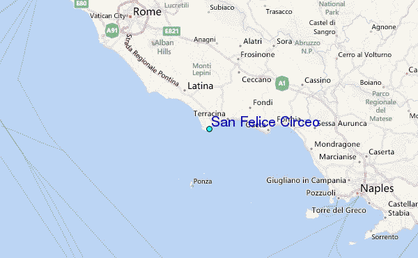 Use this relief map to navigate to tide stations, surf breaks and cities that are in the area of San Felice Circeo.