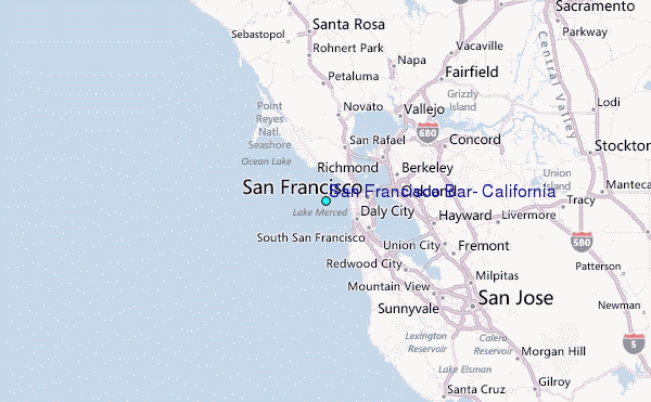 Use this relief map to navigate to tide stations, surf breaks and cities that are in the area of San Francisco Bar, California.