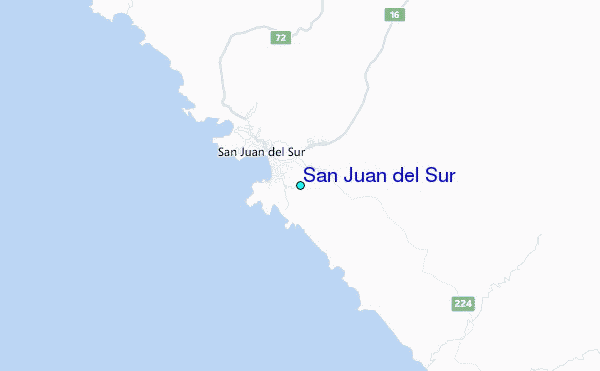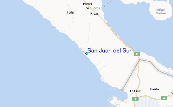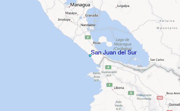 Use this relief map to navigate to tide stations, surf breaks and cities that are in the area of San Juan del Sur.