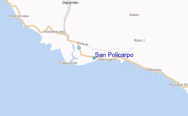 Use this relief map to navigate to tide stations, surf breaks and cities that are in the area of San Policarpo.