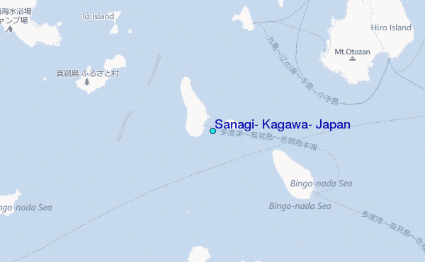 Use this relief map to navigate to tide stations, surf breaks and cities that are in the area of Sanagi, Kagawa, Japan.