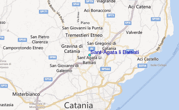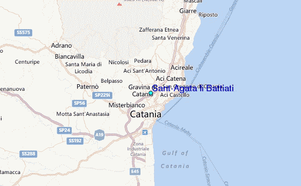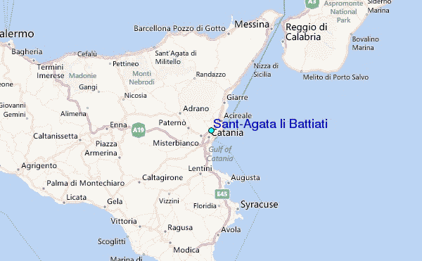 Use this relief map to navigate to tide stations, surf breaks and cities that are in the area of Sant'Agata li Battiati.