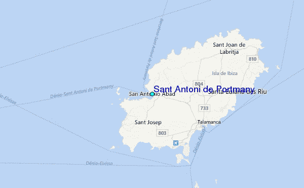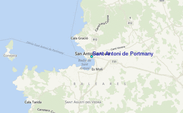 Use this relief map to navigate to tide stations, surf breaks and cities that are in the area of Sant Antoni de Portmany.