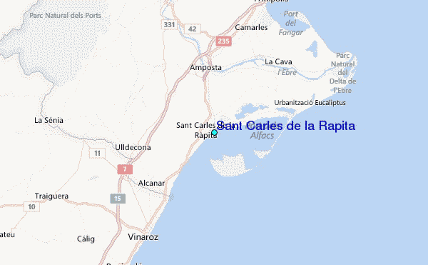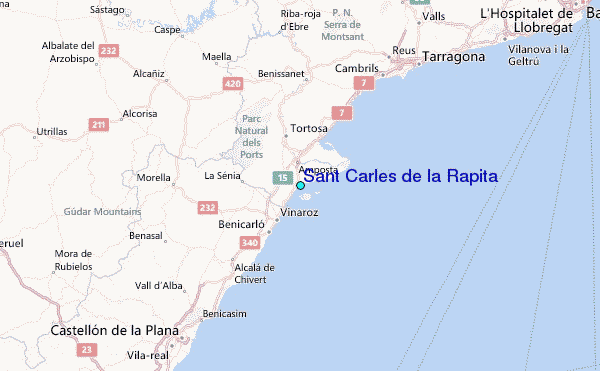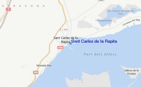 Use this relief map to navigate to tide stations, surf breaks and cities that are in the area of Sant Carles de la Rapita.