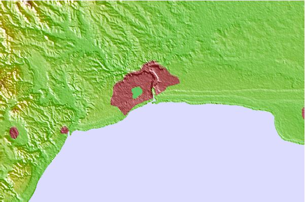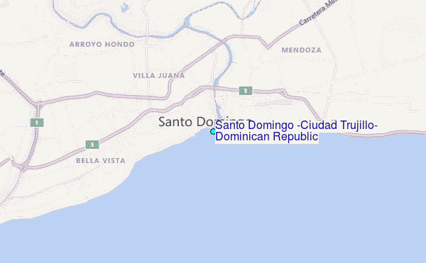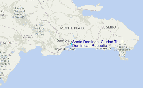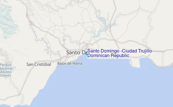 Use this relief map to navigate to tide stations, surf breaks and cities that are in the area of Santo Domingo (Ciudad Trujillo), Dominican Republic.