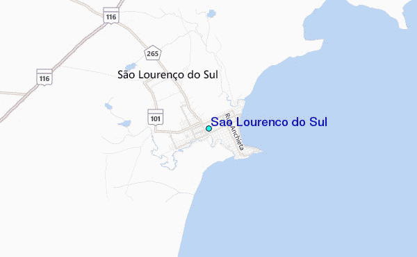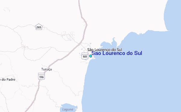 Use this relief map to navigate to tide stations, surf breaks and cities that are in the area of Sao Lourenco do Sul.