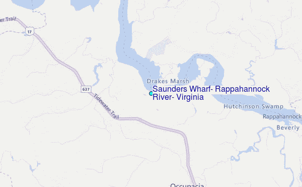 Use this relief map to navigate to tide stations, surf breaks and cities that are in the area of Saunders Wharf, Rappahannock River, Virginia.