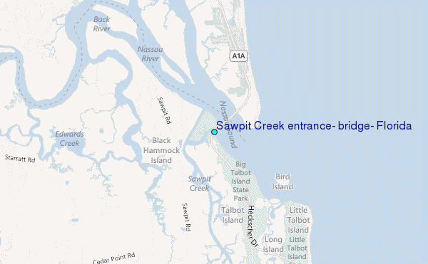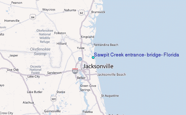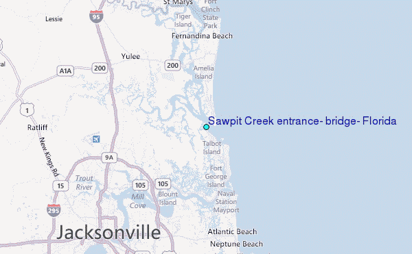 Use this relief map to navigate to tide stations, surf breaks and cities that are in the area of Sawpit Creek entrance, bridge, Florida.