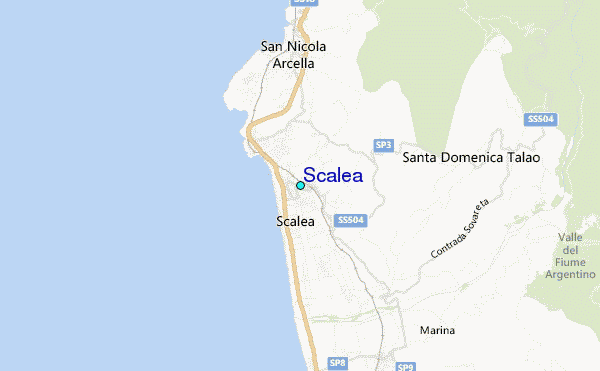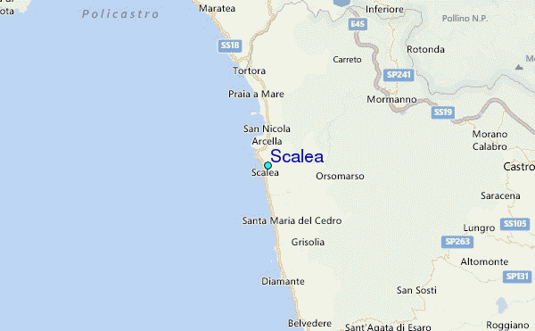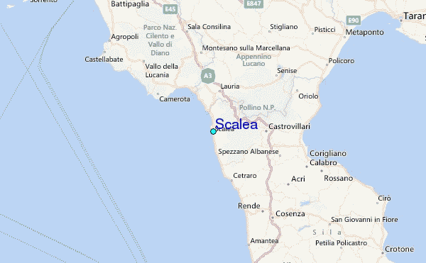 Use this relief map to navigate to tide stations, surf breaks and cities that are in the area of Scalea.