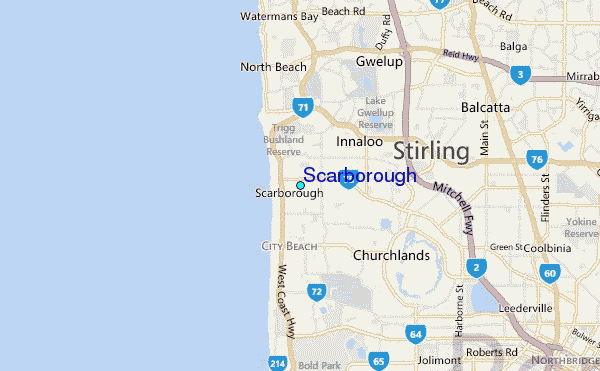 Use this relief map to navigate to tide stations, surf breaks and cities that are in the area of Scarborough.