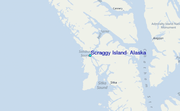 Use this relief map to navigate to tide stations, surf breaks and cities that are in the area of Scraggy Island, Alaska.
