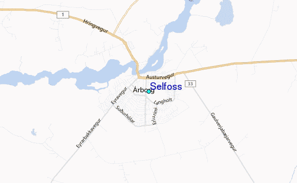 Use this relief map to navigate to tide stations, surf breaks and cities that are in the area of Selfoss.