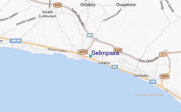 Use this relief map to navigate to tide stations, surf breaks and cities that are in the area of Selimpasa.