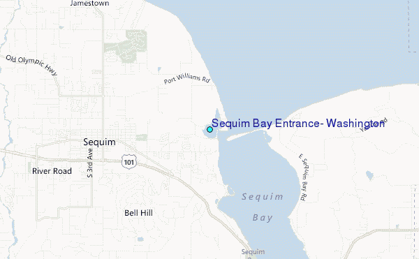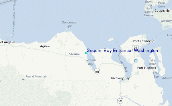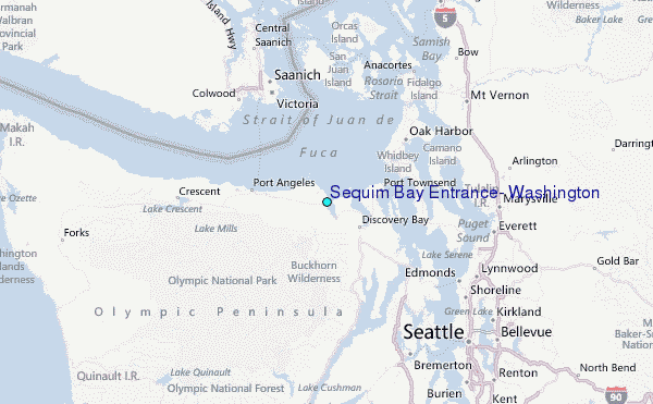 Use this relief map to navigate to tide stations, surf breaks and cities that are in the area of Sequim Bay Entrance, Washington.