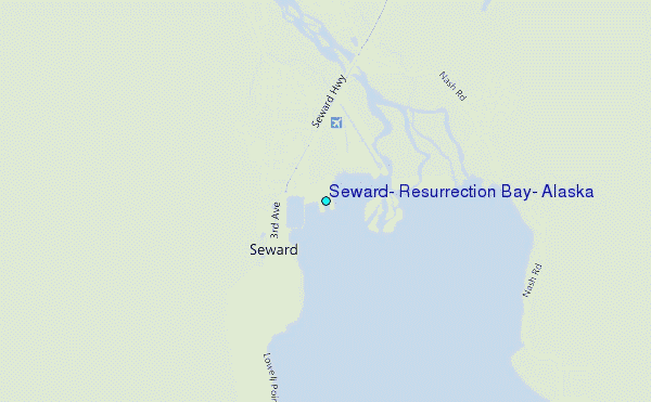 Use this relief map to navigate to tide stations, surf breaks and cities that are in the area of Seward, Resurrection Bay, Alaska.