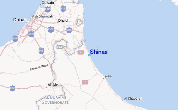Use this relief map to navigate to tide stations, surf breaks and cities that are in the area of Shinas.
