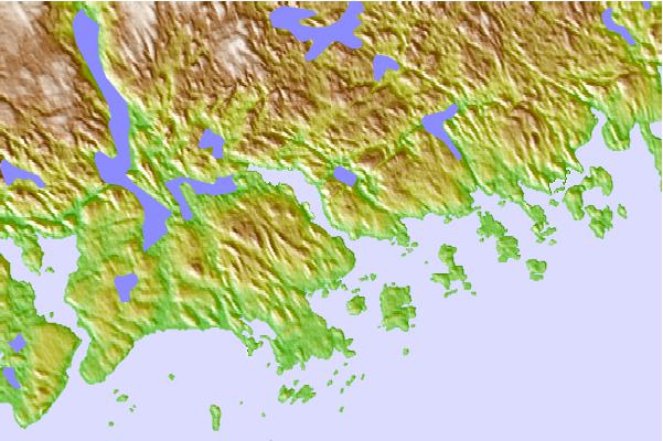 Use this relief map to navigate to tide stations, surf breaks and cities that are in the area of Ship Harbour, Nova Scotia.