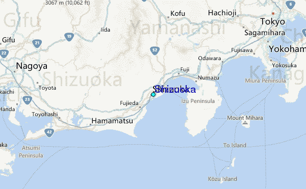 Use this relief map to navigate to tide stations, surf breaks and cities that are in the area of Shizuoka.