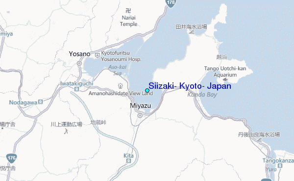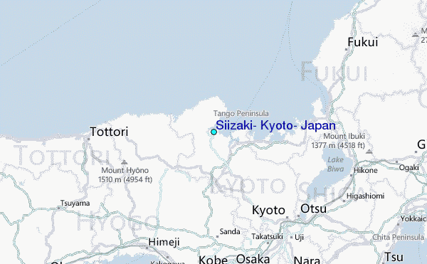 Use this relief map to navigate to tide stations, surf breaks and cities that are in the area of Siizaki, Kyoto, Japan.