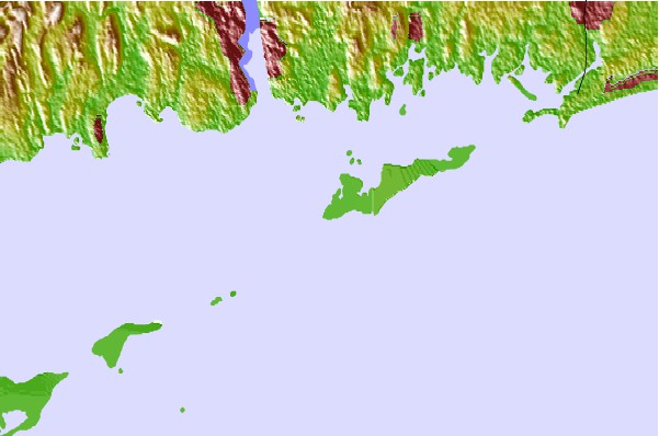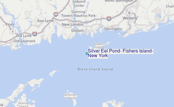 Use this relief map to navigate to tide stations, surf breaks and cities that are in the area of Silver Eel Pond, Fishers Island, New York,.