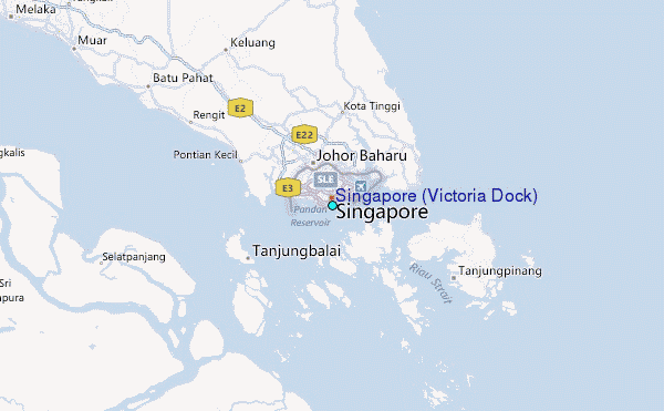 Use this relief map to navigate to tide stations, surf breaks and cities that are in the area of Singapore (Victoria Dock).