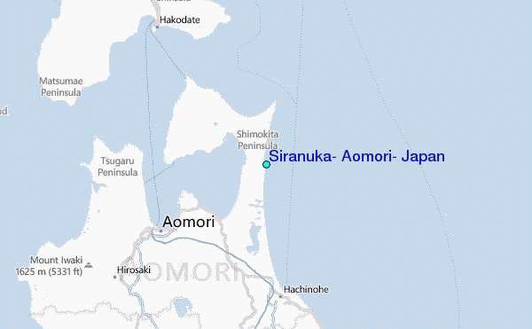 Use this relief map to navigate to tide stations, surf breaks and cities that are in the area of Siranuka, Aomori, Japan.