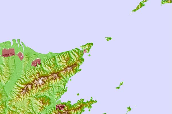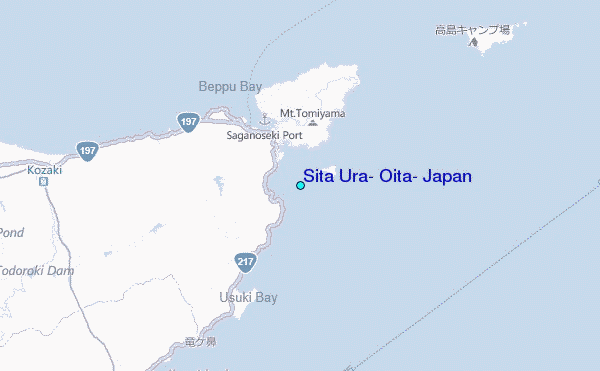 Use this relief map to navigate to tide stations, surf breaks and cities that are in the area of Sita Ura, Oita, Japan.