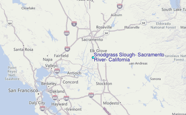 Use this relief map to navigate to tide stations, surf breaks and cities that are in the area of Snodgrass Slough, Sacramento River, California.