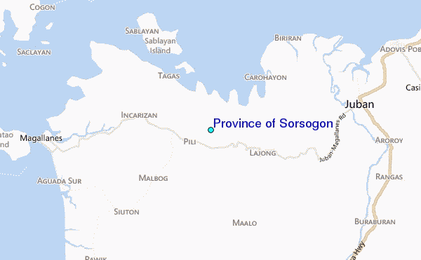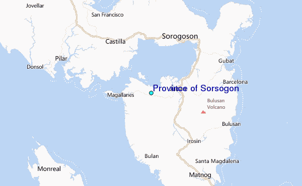 Use this relief map to navigate to tide stations, surf breaks and cities that are in the area of Province of Sorsogon.